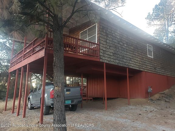 Cool little cabin, up above Ruidoso PD... old time owners used to fly into the old airport and walk up to their cabin. Nice views to the east, fireplace and covered front deck.... Cabin needs updating. Currently rented but tenant moving out. Sale will be As-Is. Additional lot to the east available also, but subject cabin not really affected by it....make offer.