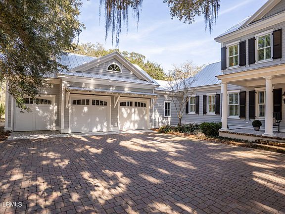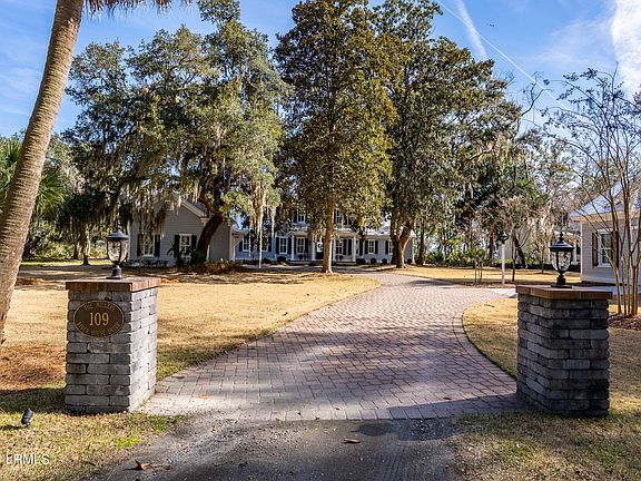 River House Plantation is a gated community located high on the bluffs of Lucy Creek, enjoying one of the best views of the Lowcountry sunrise. This small, gated community consists of only four waterfront homesites and a community dock. This is a must-see and truly spectacular custom home built by Watermark Custom Homes, boasting a breathtaking southeastern exposure. The attention to detail is evident throughout, with high-end finishes and fixtures at every turn. From the moment you step inside, you will be greeted by an open and airy floor plan that seamlessly blends indoor and outdoor living. The home is fully turnkey, with every detail taken care of for you. Enjoy a spacious main floor with the primary suite featuring large his and hers closets, a large soaking tub, and custom-tiled shower. You will love the walk-in pantry and separate laundry room, as well as the large mudroom leading to the home's three-car garage. With almost 600 sq. ft. of outdoor living on the screened back patio, you can spend your days enjoying the Lowcountry breezes. The screened porch is centered around a beautiful wood-burning fireplace and includes a large outdoor kitchen. The private pool is the perfect place to relax and soak up the sun, while the expansive outdoor living spaces offer plenty of room for entertaining. The 20x30 work shop had a bathroom in place and can easily be converted to a guest house. Whether you are a boating enthusiast or you simply can't resist the tranquility of waterfront living, this home has it all. This is a truly one-of-a-kind home that must be seen to be appreciated. River House Drive offers the ultimate in waterfront living with its expansive views of Lucy Creek. With its location, high-end finishes, and breathtaking views, this home raises the bar for those seeking coastal living.