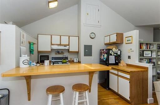 Located just outside Central Square, this contemporary, top floor condo features soaring, vaulted ceilings, an open floor plan and serene tree top views. Set back from River St on a cobblestone courtyard, it includes an off-street, covered parking spot. Short walk to Red Line T station connecting to Boston's downtown legal, medical, and financial districts. New heating system installed in 2013. Roof replaced in 2010. Heat & hot water included in $346.50 monthly condo fee! In-unit washer/dryer. Walkscore of 92.