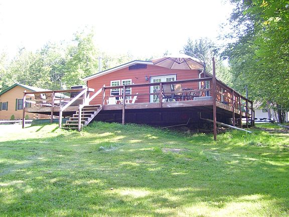 Wallenpaupack River Front Ranch Style Home with Private Dock! This 2 bedroom, 1 bath home features a spacious living room with wood burning stove, large eat in kitchen and separate laundry area. The wrap around decking is perfect for BBQ's, entertaining family and friends and enjoying the great outdoors and overlooks the spacious yard with an oversized shed for all the toys. A short walk or golf cart ride takes you to the beach area where you can picnic, swim, fish or hop on your boat or jet ski from your private dock and head to the Big Lake just minutes away for a day on Lake Wallenpaupack! Special features include a Metal Roof, Hardie Board Siding, community water and so much more....a must see!