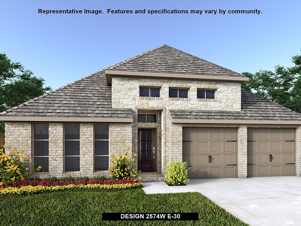 Library frames the entry with French doors. Kitchen features a long island with built-in seating space and large corner pantry. Dining area features large windows. Open family room with a wall of windows. Large master suite features three large windows and 12-foot ceilings. Double doors lead to master bath with dual vanities, a garden tub, a separate glass-enclosed shower with two entries that lead to separate walk-in closets. Guest suite features a full bath and a walk-in closet. Utility room and mud room of the two-car garage.