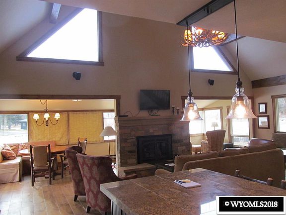 Renovated beautiful home behind the Saratoga Resort & Spa in Saratoga, WY. Perfect turn key second home is nestled between one of the stocked fishing ponds & Cadwell Slough. Great amenities through the resort including golf, hot springs & fishing. Quiet & peaceful setting that can be enjoyed wonderfully from the sun porch. Gourmet kitchen includes a chilled wine refrigerator & professional gas stove. New (2017) high efficiency gas fireplace. Irrigated & recently planted trees. New furnace & humidifier.