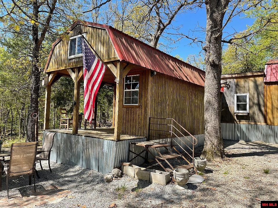 BEAUTIFUL CAMPGROUND SETTING. Sit by the firepit, relax in the hammock, enjoy the outdoors. Go fishing, boating, swimming just down the road to Lake Norfork. Great property for full time, VRBO, or private get away! Property has one bedroom with 2 lofts, can sleep 6-8 people. Built in 2016 on 2.50 acres m/l on dead end road. You'll love the unique and custom features in this home. Nice 12x24 shed has plenty of storage, electricity and window AC unit. Move in Ready! Bring your toys!