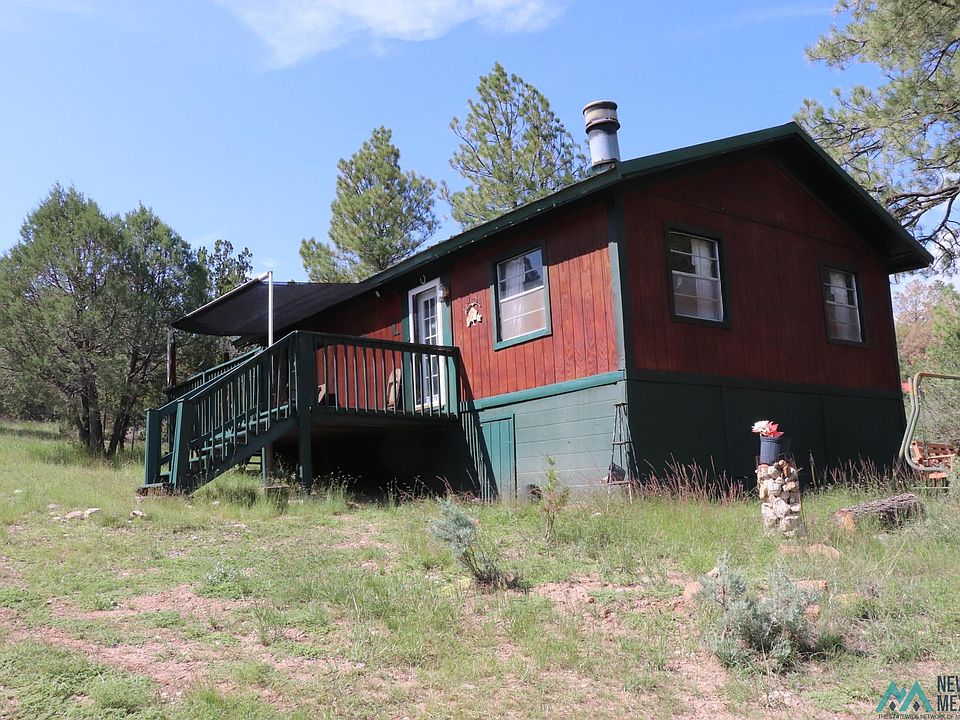 Welcome to 109 Ruby Drive. This cozy 2 bedroom, 1 bath home is situated on 1 acre of land, within the Sacramento Mountains of NM. It is the perfect place to relax and enjoy the peace and quiet of a small, mountain community. This property is located in Unit 34, approximately 35 miles south of Cloudcroft, and within walking distance of Lincoln National Forest. With decks on the front and back of the house, you can sit, relax and enjoy the beautiful mountain views, and visit with the deer, turkey and other wildlife that populate the area. Most of the furniture and appliances will be sold with the home, and a brand new septic tank and water line have been installed recently. Timberon is friendly to all types of recreational activities, including golf, fishing, camping, hunting, hiking, and ATVs. There is a golf course, community pool, fishing ponds, and a shooting range available for residents and guests in the area.