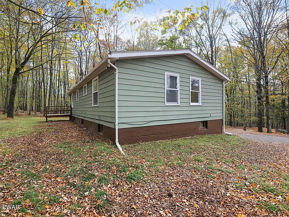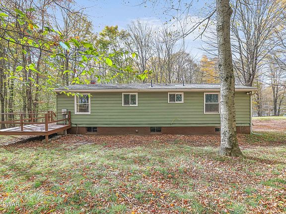 Adorable & Affordable! This three-bedroom one bathroom raised ranch style home, is move in ready and looking for new owners! Home features a cozy living room with a wood burning fireplace, a spacious eat in kitchen, and a full unfinished basement perfect for storage or further expansion! Situated on nearly 3/4 of an acre, this property is within walking distance to state land, a private 16-acre lake and the community pool and clubhouse! Located minutes to Promised Land State Park, Lake Wallenpaupack, Skytop Lodge and other Pocono attractions.