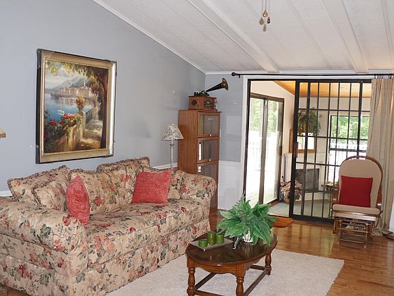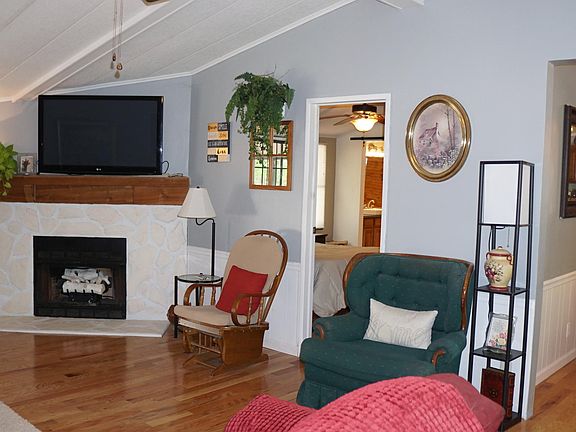 Beautifully rebuilt mfg home on block perimieter foundation, lots of ''new'' interior, new floots, new HVAC, new roof, sunroom is the absolute place to live w/wood ceiling accent & electric fireplace, wrap around deck..over 600 Sq. ft of open deck..split bedroom style, fireplace in living room w/gas logs (could be wood burning) . Kitchen perfectly equipped with new counters, new appliances, new flooring, new fixtures & lights. Master bathroom straight from HTV...tastefully finished w/wood framed oversize tub , vanity with farmhouse sink... Attached garage w/lots of storage & auto opener. Beautifully landscaped.. MOVE IN READY!!