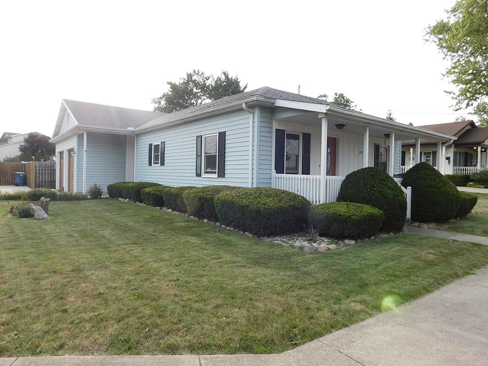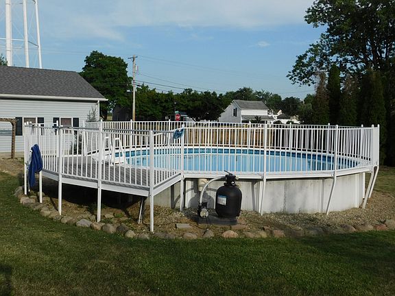 PRICE REDUCED! This ''Piece of Paradise In Town'' is busting at the seams with amenities to satisfy everyone in the family! Privacy fence borders the entire rear and side yard, which offers an abundance of fruit bearing trees and bushes such as peach, pear, apple, raspberries, strawberries, blackberries, grapes, a fresh garlic path and garden spot. Two massive paver fire pit gathering areas, 24' all aluminum above ground pool with security fenced deck and folding entry staircase that can be lifted and secured to prevent little ones from getting into without supervision. Nice workshop with electric, loft and extra concrete slab. Master bedroom and hallway has gorgeous cherry hardwood floors. Updated master bath with french provincial vanity and tile wainscoting and flooring. Spacious eat in kitchen with recessed soffit lighting, deep stone double sink accented with black fixtures and 4x6 walk in pantry. Cozy living room with wainscoting and wide double chair rail. 2nd bedroom offers a walk in closet and a space saver built in dresser. Rear bedroom leads to the 12'x16' rear deck with covered lighted gazebo to watch the sunsets. The attached garage has an abundance of storage cabinets and workbench. Roof new in 2016, windows and garage doors - 2017, C/A-Fall 2018. Set up your private showing to see all this Charmer has to offer.
