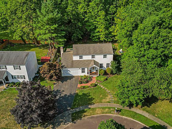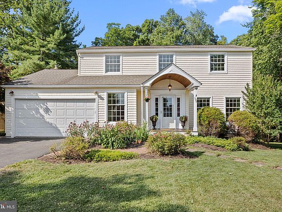 Welcome to this beautifully maintained 3-bedroom, 2.5-bath colonial offering 2,461 square feet of thoughtfully designed living space, tucked away on a quiet cul-de-sac in desirable New Britain Township and located in the award-winning Central Bucks School District. This home backs to 9 acres of preserved township woods and the picturesque Neshaminy Greenway Trail—a 2.0-mile out-and-back trail known for its peaceful setting and ease, taking about 39 minutes to complete and ideal for leisurely walks. Outdoor enthusiasts will also appreciate nearby access to the Lake Galena Hike and Bike Trail, a scenic 6-mile paved loop that connects to Route 202 and runs into Chalfont. Inside, rich Brazilian cherry hardwood floors flow throughout the main level, while the family room features solid Amendoim Brazilian oak flooring, oversized windows, skylights, and a cozy wood-burning fireplace. The updated kitchen is a cook’s dream, boasting stainless steel appliances, a 6-burner electric cooktop, double wall ovens, a 7-foot maple butcher block island, and a charming farmhouse-style double sink. The formal dining room is both elegant and inviting, with custom built-ins and detailed wainscoting that add timeless character. Upstairs, you'll find southern yellow pine hardwood floors throughout, adding warmth and continuity. The spacious primary suite features a private en suite bath with a stall shower and double vanity. Two additional bedrooms share a well-appointed hall bath with tile flooring, a tub/shower combo, and a single vanity. A cherry wood railing and hardwood staircase tie the two levels together beautifully. Additional highlights include an oversized garage, a convenient mudroom, and a spacious two-piece powder room on the main floor. The partially finished basement offers excellent versatility and storage, and includes custom pine barn doors that add a rustic, refined touch. In the rear yard, you will find a beautifully done and private paver patio and serene gardens. Perfect for lovely spring or summer evenings hosting family or friends, or just relaxing by the fire in the cool fall nights. All of this is just a short 6-minute drive to the heart of Doylestown Borough, where you can enjoy an evening out with award-winning restaurants, cozy cafés, boutique shopping, and vibrant local events. With its blend of natural beauty, thoughtful updates, and prime location, this home offers the perfect balance of privacy, charm, and convenience.