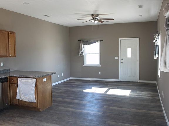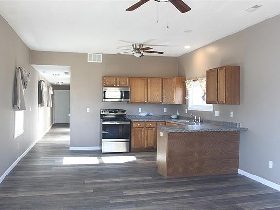- Ceiling Fan(s), Kitchen Island, Stained Cabinets