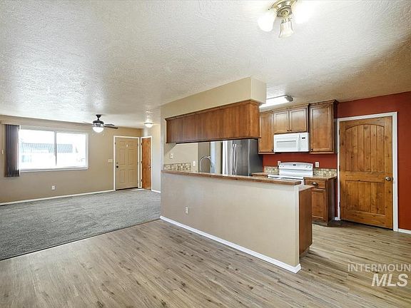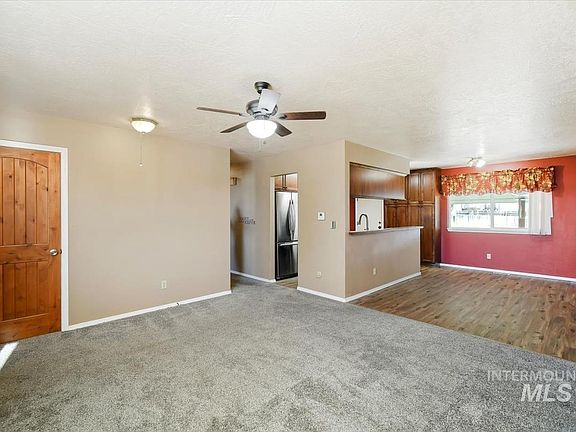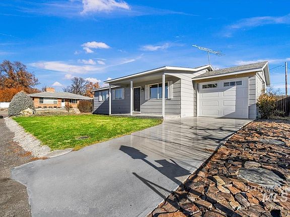 Wonderful home in the heart of Homedale. This home has updated flooring and carpet throughout. Upgraded beautiful wood doors throughout the home. Newly remodeled kitchen. RV access and parking and has a new installed garage with wifi control. Beautiful stamped concrete with covered patio. Spring flowers blooming in the garden with water on its own irrigation pump. No HOA or CC&Rs.
