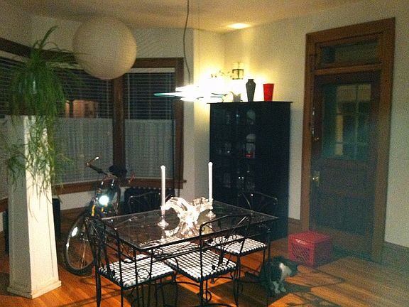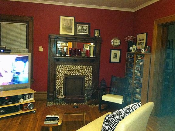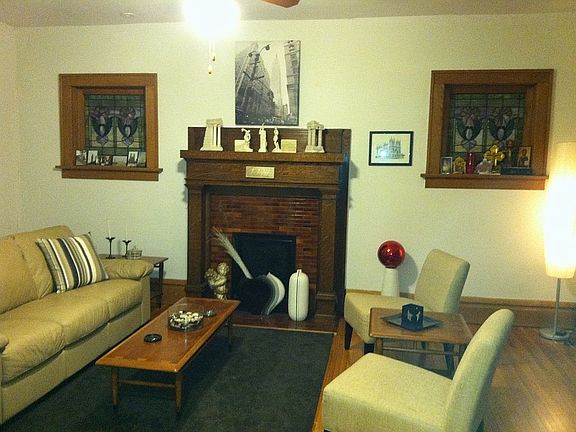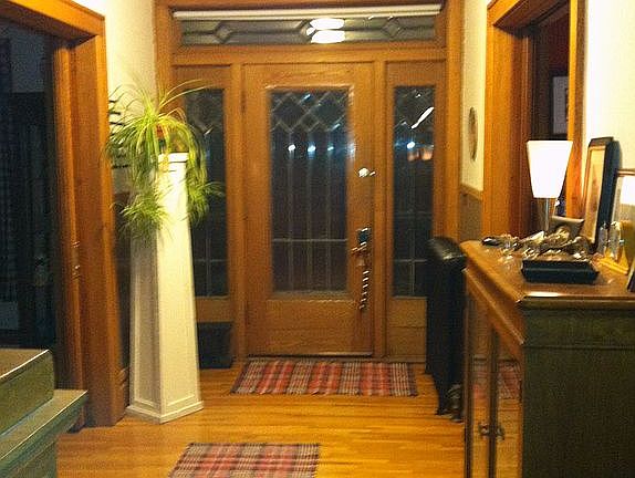 hard wood floors through out 4 bedrooms extra room on second floor 2 living rooms large dining room natural woodwork and pocket doors on first floor finished 3rd floor 17x22 large yard new back porch and send floor porch cement patio corner lot central air conditioning hot water heat stain glass windows beveled leaded glass front door side lights and transom all solid brick house