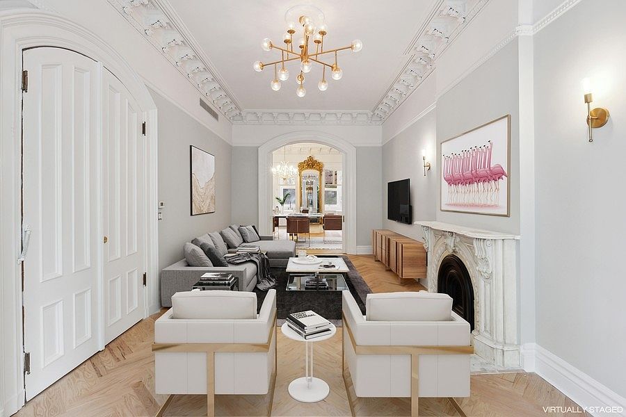 Everything You've Ever Asked For Good things come to those who wait this fully renovated brownstone garden duplex has finally arrived on market. The owner created the perfect marriage of restoring the original brownstone details and adding modern features. Starting with the wide stone porch and ending with the serene garden, this 2,200Sf 3Bed/3.5Bath apartment has everything that you want and need. Entering on the upper level, you have a 11' ceilings and wide open plan front parlour with floor to ceiling windows, marble fireplace, chandeliers, wall sconces an new herringbone hardwood floors. Continue through the pocket doors to the large formal dining room --that can easily accommodate dining for 12-- with additional marble fireplace, center medallion with chandelier and the original ornate floor to ceiling mirror. Adjacent to the dining room is a massive chef's kitchen with floor to ceiling cabinets, stainless steel appliance package including 36" stove, side by side refrigerator, dishwasher, and microwave. Continue down the back hall and you'll find a half bath and back door to an upper deck with seating that leads to the large back yard below. This level has 3 large closets and an additional pantry. On the lower level, you'll find three bedrooms that are all ensuite as well as a hall laundry nook. Bedroom #1 has a large closet and can fit a king size bedroom set plus seating area. The sleek blue, white and chrome bathroom has a deep soaking tub and shower with recessed back lit mirror above the vanity. Bedroom #2, facing the garden is a two room master suite. The front room is a sitting room with a wall of closets, the back room is large enough to fit a king size bed with nightstands. The bathroom is breathtaking with its large format black and white tiles, deep 6' soaking bath tub, separate shower nook with Vichy style rainfall shower heads, 5' double vanity with backlit recessed mirror, and black stone floor. Further down the hall you'll come to Bedroom #3, a queen size bedroom with a deep closet and a glass door wall with direct access to the garden. The ensuite bathroom has brown stone and marble accents, walk-in shower with rainfall showerhead and bronze finishes. The large backyard is perfect for entertaining. There is access from the lower level as well as access from the upper deck. The high privacy fence has lateral grooves creating a 3D textured effect, and a storage shed hidden on the back wall. Along the perimeter of the fence, you have planters that can double as seating benches. The center of the garden has two tiers and fully paved with stone. There are hardwood floors throughout, recessed lighting, and forced air as well as additional mini splits for heating and cooling with time and force programming for maintaining ideal temperatures in the home. 109 South Elliott is on a quiet landmarked block located in the middle of all of the action of Fort Greene. Two blocks north, you'll find the LIU campus and hospital, Fort Greene Park, tennis courts, dog park, summer concerts, festivals and movies, the farmer's market. Two blocks south, you'll find Barclays Center with it's endless schedule of sporting and music events, plus the shops of Atlantic Center Mall -including Target, Stop & Shop, DSW, Best Buy, and Marshall's. Two blocks to the west, is the sprawling Brooklyn Academy of Music campus of music, dance, theater and performance houses -including BAM Harvey, BAM Fisher, BAM Howard Gilman Opera, BAM Peter Jay Sharp, and of course BAM Cinema & BAM Cafe. As you head east, you'll find a host of bars, restaurants and boutiques all within a few short blocks. Located only 15 minutes from Manhattan and 1 block to Atlantic Terminal with the A/C/G/2/3/4/5/B/D/Q/N/R/W and LIRR trains. Your rent includes heat and hot water. Pets on a case by case basis. Available immediately. NOTE: SOME PHOTOS VIRTUALLY STAGED. OWNER IS RESTORING WALLS BACK TO A NEUTRAL/WHITE COLOR PALATE