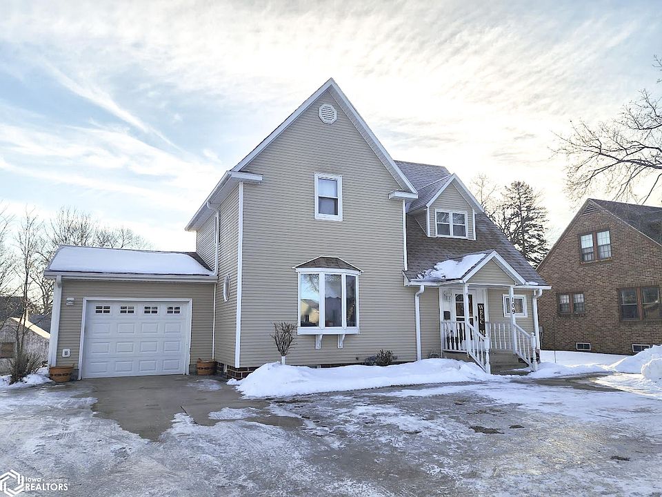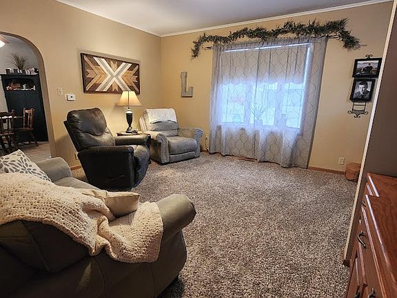 This cozy 1.5 story home is ready for a new owner! The main level of this home boasts an L shaped kitchen w/oak cabinetry & appliances will stay. There is a separate dining room just off the front entry that overlooks the living room. On the east side of the home there is a bonus room, currently used as an office, with a full bath connected! There is a patio door that leads to an enclosed porch, currently being used as a hot tub room and features a cedar plank ceiling w/entrance to the one stall attached garage (14x28 deep). The upper level of the home has three modest bedrooms and another full bath. Full basement w/half bath, laundry, utilities and great storage space. New sewer line from house to street. Home sits on a 0.20 acre lot w/ a cute little shed in the backyard for storage. Don't miss your chance to call this one home!
