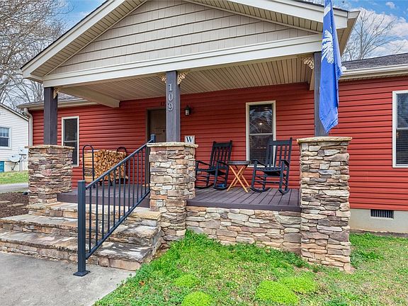 LOCATION! LOCATION! LOCATION! Welcome to 109 S. Laurel Street, a charming and updated 3-bedroom, 2-bath Craftsman style home offering 1,440 sq ft on a corner lot in the heart of Walhalla—ranked the 12th safest town in South Carolina. This inviting home features hardwood floors, granite countertops, custom cabinetry, smooth 9+ foot ceilings, custom paint, and blinds that convey. The flexible third bedroom is currently set up as an office/library which includes a large closet, making it ideal for a guest room or additional bedroom. The primary suite offers a walk-in closet and private ensuite bath, while the second full bathroom is conveniently located off the hall. Enjoy outdoor living with a newly fenced backyard, complete with grilling and lounge decks, plus a covered front porch built in 2009 ready for your rocking chairs. Additional highlights include the one-car attached garage with automatic door opener, roof replaced in 2009, and the 0.17-acre corner lot. The sauna, refrigerator, washer, and dryer will convey with an acceptable purchase contract. Some noteworthy features include the stacked stone pops on the front columns of the home adding to its rustic charm, the coordinating stacked stone floor to ceiling wood burning fireplace - the centerpiece of the great room, and the clawfoot tub in the primary bathroom. The location is unbeatable as you can literally walk, bike, or take your golf cart to downtown Walhalla’s Main Street area where you can enjoy the locally owned shops, services, and restaurants. The elementary school is just two blocks away; Clemson University is a 30-minute drive as well as Lakes Keowee and Hartwell. Greenville is a 1-hour drive and heading north, the Highlands/Cashiers, NC area is a quick 1-hour drive. The City of Walhalla is also building a new Recreation & Community Center, and a new Police Station has been approved, adding even more long-term value to the area. As the new homeowners of this great property, you can enjoy small-town living with modern comforts, walkability, and strong community investment—don’t miss this opportunity.