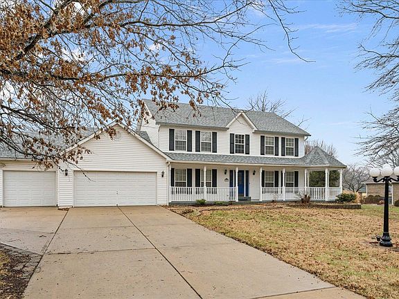 This 1.5-story home is situated on a significant level lot in the sought-after subdivision, Country Lake Estates. As you approach the front of the house, you will be welcomed by a charming front porch that leads to an inviting gazebo. The entryway has a 2-story open foyer and a 2-story great room with an abundance of windows and a fireplace, and it opens to the kitchen. The spacious kitchen has sleek white cabinets, quartz countertops, and a pantry. There is a breakfast area off the kitchen and a door that leads to the enormous deck. There is a formal dining room at the front of the home. The main bedroom is on the main level and features a walk-in closet, full bath, dual vanity, privacy toilet, and garden tub. There are three additional bedrooms on the upper level, and two are separated by a jack 'n jill bath. The third has a private full bathroom. There is a Large 3-car garage and a full basement that is unfinished for storage or to finish as you would like.
