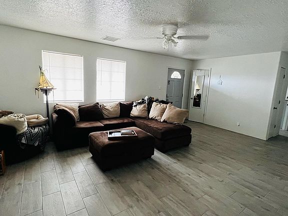 This newly remodeled 3 bedroom ranch-style home with wide open floor plan comes with a very functional kitchen with appliances to include: built in microwave, refrigerator, gas range, garbage disposal, dish washer, plus plenty of cabinets space for storage. Also has new granite counter tops with buffet/breakfast nook. Floor tile throughout for easy maintenance and best to prevent respiratory issues. Located in quiet neighborhood with yard, close to stores and takes just seconds to access I-25 freeway... 30 minutes to Albuquerque and 10 minutes to Los Lunas (FB and Amazon). It has a great enclosed patio for morning coffee or relaxing evenings. Also has extended concrete slabs directly behind home. Comes with a finished attached garage that can be used for gym or whatever you choose. Laundry facility is in garage with utility sink, and additional storage. If needed RV parking and hook-ups are available.