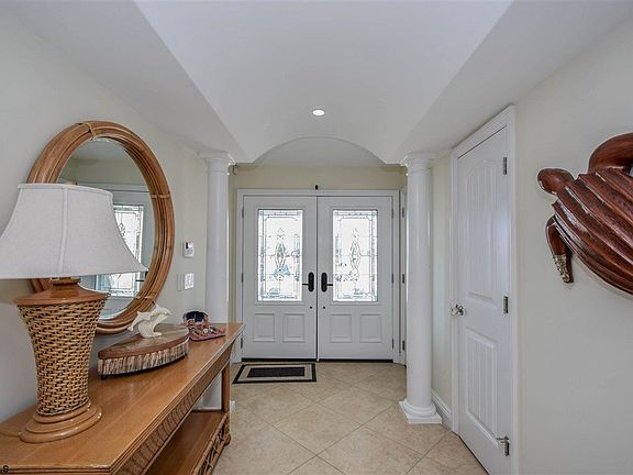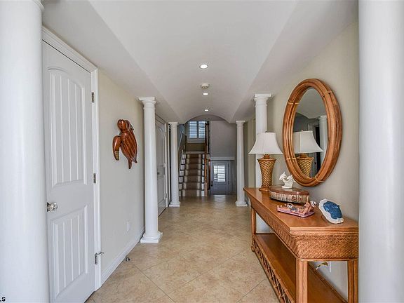 Like new custom built beach block, upside down design home boasting dynamic, direct,& jaw dropping ocean views. Exterior features include: 3 oversized decks designed to entertain family and friends, totally maintenance free exterior featuring Cedar impressions siding & custom Azek trim boards & columns along with a very practical oversized attached garage. 1st level features an inviting marble foyer entrance with a barrel roof architectural detail & interior decorative columns along with a beautiful e'suite, two additional gracious bedrooms & fully tiled marble bath with Designer fixtures. Second level includes: open floor plan design featuring a dream kitchen with a Viking ProSeries appliance package, wine chiller, custom cabinets with upgraded trim package & stylish stone backsplash. The adjacent dining area is graced with a wall of windows allowing for spectacular ocean views flowing seamlessly into the main living area with the focal point being a gas fireplace flanked by cozy window seats & deck access. A den/5th bedroom & exquisite full bath round out the second floor. The third floor is reserved for the home office with kitchenette & the amazing master suite boating direct ocean views & includes, True walk-in closet s, large sitting area with gas remote fireplace, HIS and HER master bathrooms fully equipped with marble walk in showers with multiple temperature controlled body sprays, rain head & handheld wand, relaxing soaking tub, custom cabinetry & upgraded fixtures