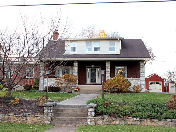 This charming 1930s home features a grand foyer, formal dining rm w/French doors, gas stove insert, hardwood throughout. Updated kitchen w/Quartz counters, farm sink, stainless appliances, gas cooktop & tile backsplash. Main level mstr bedrm w/attchd bath. Spacious rms w/potential for 6th bedrm. Solar water heater w/panel on roof. Lg stone porch, detached garage, storage shed & lovely landscaping.