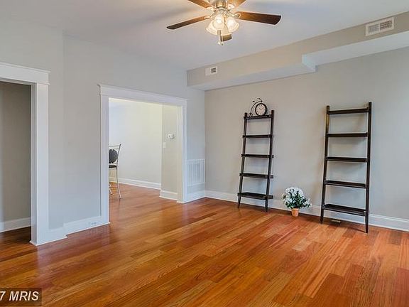 BEAUTIFULLY DESIGNED PORCH FRONT RENOVATION W/ 3 FINISHED LEVELS & FENCED YARD! Spacious living room & sep dining room w/ hardwood floors, custom kit w/ granite counters, ss appliances, & tile backsplash, upper level with 3 bedrooms w/ hardwood floors & 1 full bath, finished basement w/ family room, full bath, & sep laundry area. Large fenced backyard!