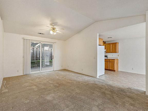 Centrally located near shopping, schools, entertainment and medical services, this 3 bedroom, 2 bath home offers a comfortable layout and easy-care landscaping. It's set well off the street with an oversize driveway allowing for ample parking and room for an RV, boat or trailer. The functional floor plan includes vaulted living and dining areas, and a master suite with a full bathroom, walk in closet and private patio access. A few extras include a newer roof (approximately 4 years old), a spacious covered patio, the fridge and microwave are included, and a 1 year Home Warranty is included (First American Value Plus). This home is turn-key, just move in and enjoy!