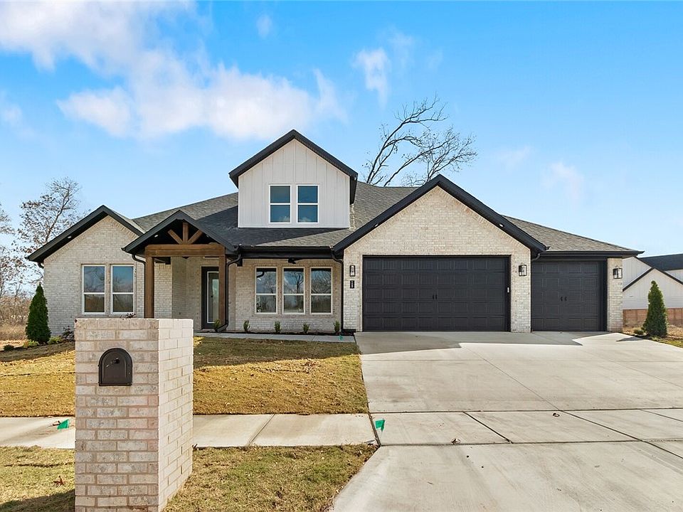 Seller will do either a 2/1 rate buy down or $10,000 in concessions. With 2/1 buy down the buyer will get an interest rate 2% below current market rate for the first year and 1% the second year and can refinance with no lender fees. Buyer must use preferred lender for the 2/1 buy down refinance option. $3,000 lender credit with preferred lender. Beautiful new construction in a great location in West Bentonville. You will be 4 miles from the Bentonville Square and 2.5 miles to Coler bike trails. This open floor plan has wood floors in the entry, study, dining room, living room, kitchen and hallways. The primary bedroom also has wood floors, a sitting room and a large walk in closet. In the primary bath there is a large tile shower with dual shower heads and a rain shower head in the center. Upstairs you will find three bedrooms and two full baths. There is a fireplace on the patio that is perfect for entertaining, your morning coffee or a quiet evening by the fire.