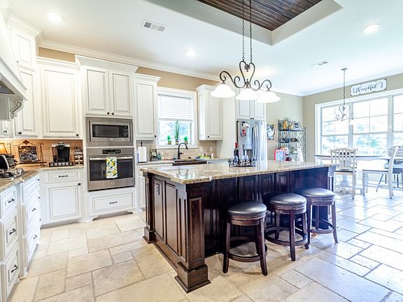 Make your way toward this 4 bedroom 3 bath home with a triple split floor plan. This treasure is a custom build by Eddie Flanigen. The home features a beautiful brick archway, granite counter tops, 5-eye gas stove top, kitchen island, large pantry and laundry room. There is a his and hers walk-in, separate shower/tub, screened patio with gas fireplace, grill and small fridge. Did we mention there is a wine fridge/bar? Upstairs you will find the perfect place to hang out with family or friends in your own movie room/playroom. Don't hesitate! Call for your private showing today!