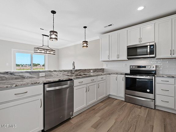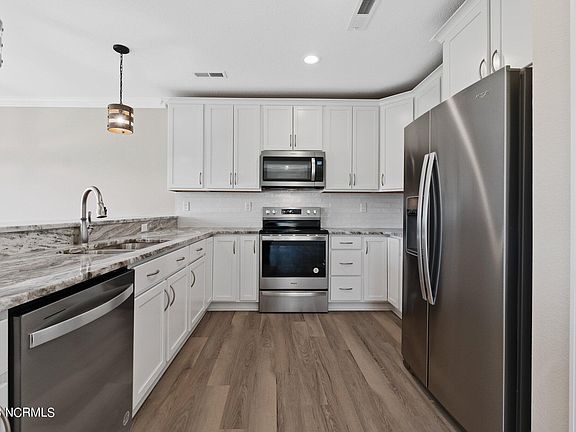 Another quality home built by K.M. Cash Construction! This builder does not skimp on features; crown molding, LVP and solid wood shelving included in all the closets. Boasting a kitchen made for entertaining with 42'' shaker cabinetry, solid surface counters, subway tile backsplash and a full stainless steel appliance package. Open concept living plus a 1st floor bedroom and full bath. Master bedroom is private with an entry hall, dual sinks, tiled shower, frameless glass enclosure and two shower heads! Easy commute to Virginia, OBX and Elizabeth City. Quiet subdivision adjacent to the gorgeous Currituck Sound. New construction on a beautiful 3/4 acre lot- ready today- call for a private tour!