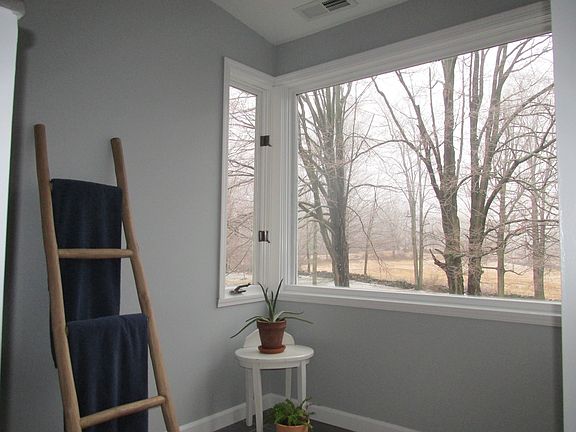 Well appointed expanded Cape w/Full Baths in ea Bedroom. Oversized Master Suite features Full Bath, Walk-in Closet, Vaulted Ceiling, CA and spacious sitting area makes for a perfect home office. Main level Bedroom with private entrance off slate patio makes for Possible Au Pair or Bedroom for extended guests. Large Living Room Brick Fireplace with Built-ins and new Sliders to Stone Patio. Updated Kitchen includes Granite Counters and Glass Backsplash, Grill in Brick Fireplace and Hardwood Flrs. Main level Laundry off tiled Mud Room. Partially finished lower level. Exterior features include two Stone Patios, private and level 3 acres and Mature Plantings. Views of adjoining pastures. Great location, walk to town center. Central Air 2nd flr.