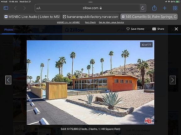This 648 square foot single family home has 1 bedrooms and 1.0 bathrooms. This home is located at 109 Santa Paula St, Palm Springs, CA 92264.