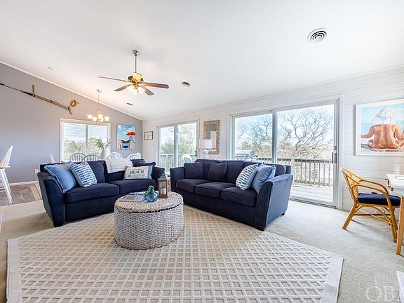 Introducing the perfect coastal-style home located in the highly sought-after Schooner Ridge community. This impeccably maintained, turnkey property offers the ultimate in comfort and convenience. Situated in the heart of Duck, just a short distance from the beach, this 5 Bedroom (1 Primary Suite) 3.5 Bath home boasts sound views and breathtaking sunsets. Upon entering, you'll be greeted by a light-filled and spacious interior, sporting a thoughtfully designed reverse floor plan that encourages family gatherings and seamless entertaining. With no expense spared, the kitchen and bathrooms have been tastefully updated, providing a modern and stylish ambiance. The top floor offers an open concept floor plan including a large great room with shiplap accent wall, gas fireplace, and vaulted ceiling; a chef's kitchen featuring granite countertops, white beadboard cabinets, smoothe range/oven, and plank tile flooring; a power bath; and a generous primary suite with an update private bath. The mid-level has 4 tastefully decorated bedrooms and one shared bath. The ground level features a fantastic recreation room, adding to the enjoyment and versatility of the home. Step outdoors to discover an array of delightful living spaces, including sun decks, covered decks, and a beautiful heated saltwater pool area—perfect for enjoying the sunshine and relaxation. In addition to the numerous recent updates, such as a new roof and skylights in 2018, new refrigerator in 2023, 1 new HVAC unit in 2023, repair/replacement all deteriorated siding in 2023, painted the exterior, exterior painted in 2023, and all-new plumbing in 2015, this property benefits from its location in an "X" flood zone, ensuring peace of mind for buyers. Furthermore, residing in Schooner Ridge grants you access to a wealth of exclusive amenities. Take advantage of the state-of-the-art Community Recreation Center, complete with a fitness facility, racquetball court, game room, heated indoor pool, and more. On warmer days, enjoy a refreshing dip in one of the three pools available, including an oceanfront pool. With its proximity to Duck Village, you'll have ease of access to an abundance of restaurants and shopping options, just a pleasant stroll away. Whether you're seeking the ideal second home, a lucrative investment property, or a primary residence, this home is a must-see that ticks all the boxes. Don't miss out on this unique opportunity to make this coastal retreat your own.
