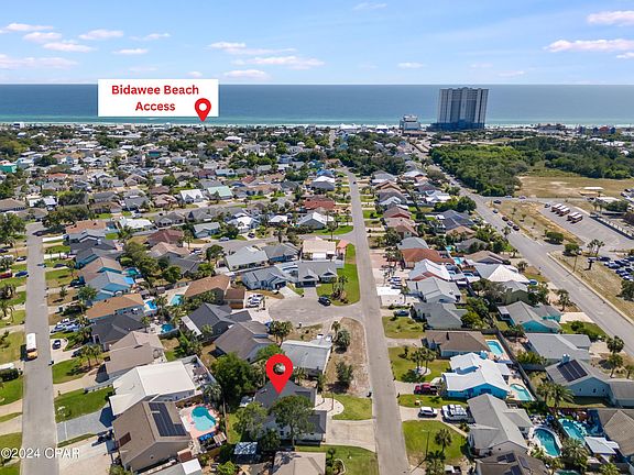 Outside, the spacious yard is perfect for entertaining, relaxing under the sun, or hosting cook-outs with guests. Ready to head down to the beach? This home has PRIVATE DEEDED ACCESS to Bidawee Beach only ½ mile walk or a golf cart trip away! Location is everything! This home is located on beach-side of HWY 98 making it a quick trip to the sun and the sand. Only 2 miles to Pier Park, 6 miles from the Hathaway Bridge, and 10 Miles to HWY 30A! Come check it out!