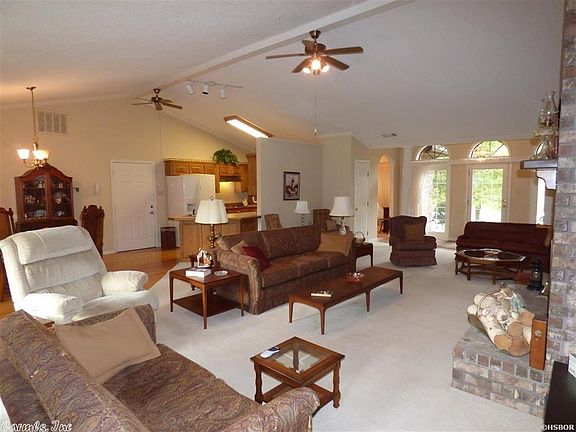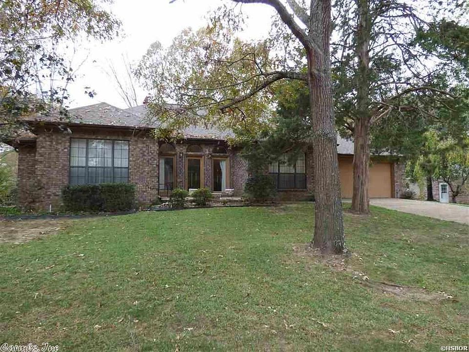 Enjoy this elegant yet comfortable one level all brick 4 bedroom and 2 bath home in a park-like setting. Tucked away on a quiet street just minutes from Lake Hamilton and Majestic Lodge boat ramp this home offers a wonderfully open floor plan with vaulted ceilings, hardwood floors in the kitchen area, brick fireplace, professionally landscaped yard with sprinkler system, fenced back yard, 10 X 12 storage building, and a flagstone patio. Beautiful old growth trees add to the serenity!