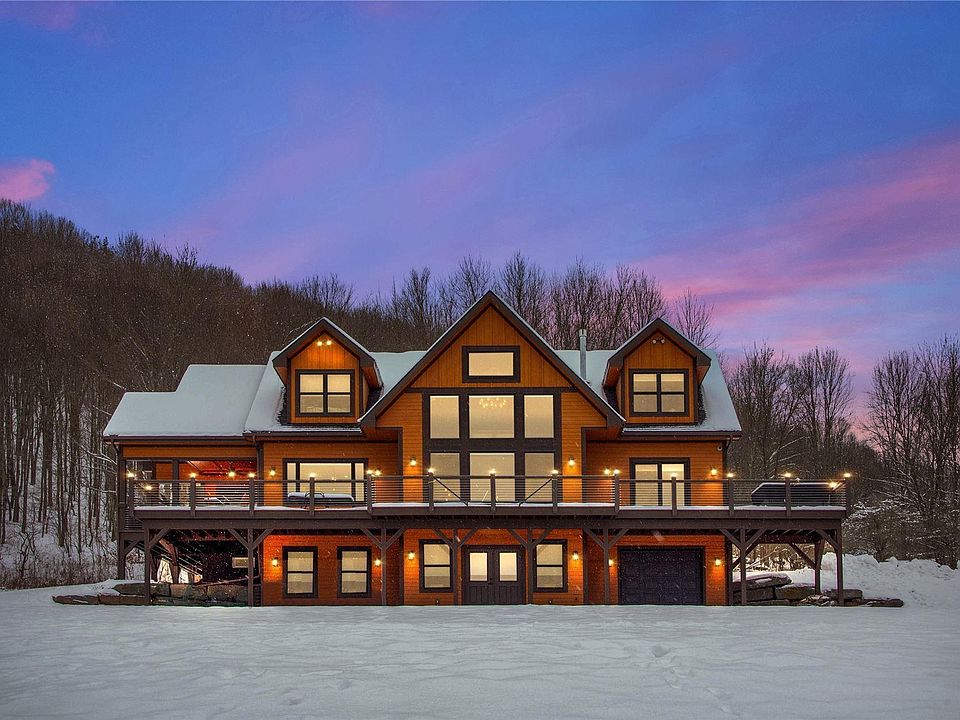 Custom built in 2019, this amazing 4 bedroom, 3.55 bathroom home offers radiant heating and high end appliances, fixtures and finishes throughout. Spectacular scenic mountain views! Located on 30 acres in Kortright (cleared and wooded) with a pond, creek and waterfall. Three spacious levels (3090sf) consist of main level with open floor plan, vaulted ceiling, fireplace, kitchen with Viking Suite of appliances, granite counters, dining area. great room, nook/work station, primary bedroom with ensuite luxury bathroom, powder room, pantry, laundry room and five points of access to 110' wrap around deck with hot tub. The second level has a large loft, 3 bedrooms and 2 fully tiled bathrooms. The lower level completes this home with a family room, billiard area, wet bar with granite counters, powder room, mechanical/storage room, garage, utility room and walk-out double doors to patio/lawn area. Near fishing, hiking, West Branch of Delaware River. 12 minutes to supermarkets, shops, restaurants in Delhi or Stamford. Short drive to Oneonta, Cooperstown and Windham, Hunter, Belleayre, Plattekill Ski Mountains. Taxes are county/town/fire + school., Additional information: Separate Hotwater Heater:Y