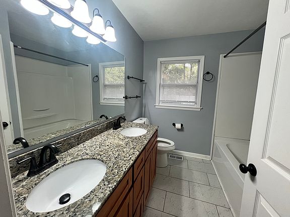Upgraded home on the outskirts of town! Bonus living room with open area concept and refinished hardwood floors. Stainless appliances in kitchen with modern countertops and cabinetry. Close distance to Castle Hayne Elementary. Large fenced backyard. Relax on the spacious screened-in porch with a bar! Updated bathroom with Jack and Jill sink. Tenant pays $60/mo additional for water and sewer.