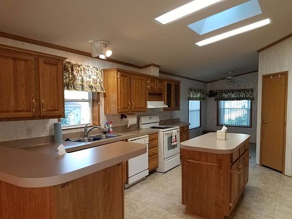 This mobile home has an open concept. The kitchen has plenty of cupboards and counter space. In the kitchen there is a place for a kitchen table and room for a dining table is on the other side of the breakfast bar. Store plenty in the walk in pantry located kiddie corner from the island counter, which has electric. The front door is 36" door. There is an office/den with a nice view. The master bedroom hosts a bath with a garden tub, shower, raised toilet and walk in closet. The hall bath has a raised toilet also. The tilt in windows provides ease of cleaning. What a relaxing view from the covered front porch. Model is a Schult. Lot rent is $265.00 a month and $10.00 each additional persons. Garage taxes are $210.08 a year and Mobile home taxes are $100.80, which includes a senior exception. Buyers must be approved by Knollwood Estates Management. Directions: Left on Tanglewood, Left on Knollwood, Left on Shorewood.