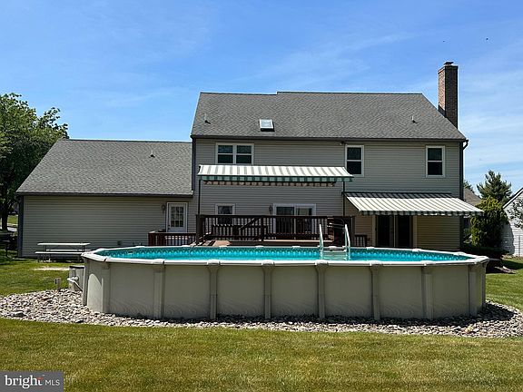 Green Valley 2-story property in Wilson S D. Balcony access overlooks 2-story foyer, large eat-in kitchen with granite countertops and island, and pantry. All appliances remain. Kitchen opens to the family room with wood-burning brick fireplace and full glass door to rear decks. Formal dining room with chair rail and crown mouldings. Main floor laundry room with exterior door to the rear deck. Composite decks consisting of one large deck which adjoins to the pool deck, both have electric retractable awnings. Large oval above ground swimming pool. Generous sized rear flat yard, oversized attached 2-car garage with interior stair access to the large dry basement. On the 2nd floor there are generous sized 4 bedrooms; lovely well-appointed primary bedroom suite with walk-in closet and spa bath with whirlpool bath tub, 2 sinks, and shower stall. Storage closet just off the 2nd floor walk-in closet (above garage). Economical gas heat and hot water. Large basement just waiting for your design and finishes. Convenient location. This home won't last long! Schedule your tour soon or stop by the upcoming OPEN HOUSE on Sunday June 11th from 2-4 pm!