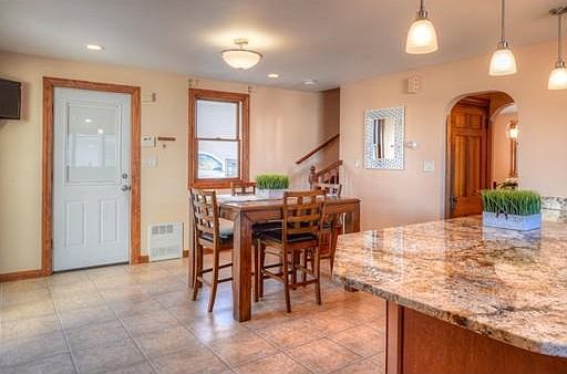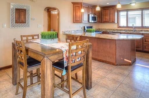 - KIT_DSCRP: Dining Area, Countertops - Stone/Granite/Solid, Flooring - Stone/Ceramic Tile, Stainless Steel Appliances, Recessed Lighting, Slider, Exterior Access, Peninsula