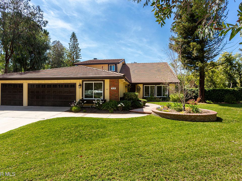 Wonderful opportunity to put down roots in the highly desirable Country Lane community in West Simi Valley! Situated in the beautifully maintained equestrian community, this Fountainwood home surely has one of the best lots & location. Approximately 1 acre of land located at the end of a quiet cul-de-sac, this home offers ultimate privacy! The long driveway, 3 car garage & generous RV parking provide ample space for cars and recreational vehicles. Inside, the thoughtfully laid out floor plan begins with a spacious vaulted entry & features a formal dining area, family room with cozy fireplace, & separate living room. Adjacent to the 3 car garage, you'll find a bonus room, perfect for a gym, office, indoor laundry room, or flex space. The beautiful kitchen overlooks the rear yard & offers stainless steel appliances, updated cabinetry & countertops & breakfast bar seating. The first floor is complete with a spacious downstairs bedroom & remodeled full bath. Retreat upstairs to the master suite with walk-in closet & recently redone balcony with gorgeous sunset views. The en suite master bath boasts dual vanities, separate shower & soaking tub for your relaxation. The secondary bedrooms are generously sized, one with an en suite remodeled bathroom. Retreat to your rear yard where the possibilities are endless! The expansive flat lot is tree lined, affording privacy from all sides! Enjoy the outdoors & entertain year round with your pool & spa, covered patio, & raised gardens. There is ample room for play, or even add a separate dwelling! This home is equestrian zoned and has direct access to the community trails. In addition to being well maintained, this home offers recent upgrades including: newer HVAC, dual paned windows, freshly painted exterior, electric vehicle charging station, RV dump, new patio cover & updated pool equipment. Conveniently located near Coyote Park, horse & hiking trails, this one has it all!