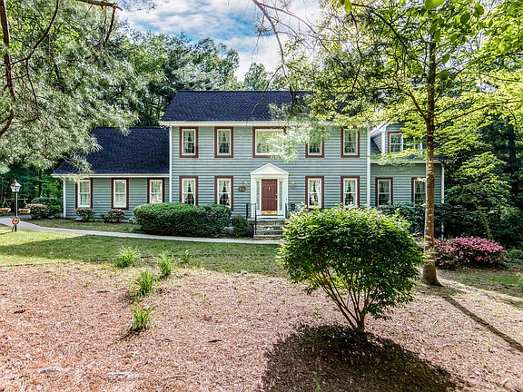 Absolutely charming home situated on over 1 beautiful level acres located in desirable Claremont subdivision in the heart of Flat Rock. Brand new roof and skylights! Main level living with plenty of room for guests on the upper level. Main level features wood floors, vaulted ceiling foyer, great room with stone gas fireplace ,vaulted ceiling and built-in bookcases, spacious kitchen with island, breakfast bar, pull-outs, built-in desk, breakfast area with vaulted ceiling, dining room w/ raised panel walls, living room, huge sunroom with slate like tile floors with access to open deck and grilling deck, master suite with walk-in closet, double vanity, walk-in shower and jet tub, laundry room and powder bath. The upper level boasts 3 guest rooms, full bath and bonus room. Generator and security system. Enjoy the outdoors on this park like setting with pathway leading to small stream or while relaxing on the private deck. Very convenient location!