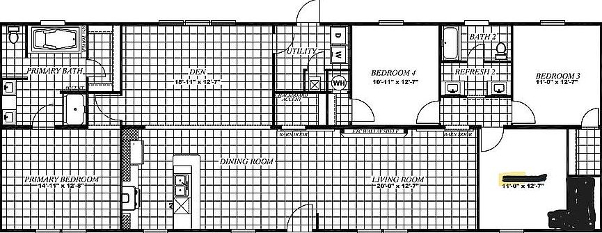 Doublewide with 3 bedrooms and 2 bathrooms with a fourth room that can be used as a office.
