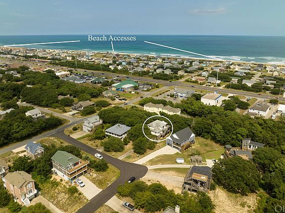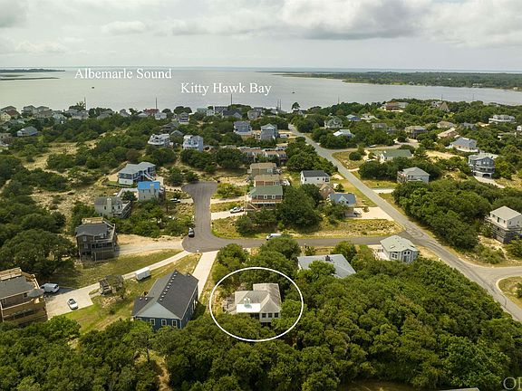 Nestled perfectly back in the sought-after West Side area of Kitty Hawk. This 4-bedroom, 2 and a 1/2 bath home checks the boxes you’d want when looking for a home to make your own mark on in this area. Set back on its lot and enveloped by the beauty of lush live oak trees, 109 Sunrise View creates a natural retreat in the heart of the bustling surroundings. Featuring a 3 level reverse floor plan with the Large main living space, Gas fireplace, Kitchen, Dining, Half Bath and Florida room all flowing together with ease. The Juniper accent walls in the living and bedroom areas offer warmth and originality. The Top floor decks are positioned in the live oak canopy that cover large swaths of the 0.34ac lot. The mid level offers a secondary entry, the main En-Suite bedroom while the full hall bath services the three additional bedrooms. An oversized screen porch is accessed by two of the bedrooms with an abundance of porch spaces on each level. The dry entry ground floor is accessed from the carport with plenty of room for storage and a dedicated laundry room. A large covered area with landscaping rock and an outside shower allows for outdoor fun with covered shaded areas. Thanks to its positioning close to one of the highest points in Kitty Hawk, this home is securely situated within the X flood zone, offering you peace of mind. Yet, your proximity to both the ocean and the sound ensures you are never far from the water's edge. A short stroll or bike ride takes you to the Bay Drive multi-use path, Windgrass Circle sound front park, or a quick jaunt across the main road to the stunning beaches of Kitty Hawk. This residence serves as a fantastic starting point for a single family seeking an excellent deal in the area or an investor aiming to establish an investment property. This is a unique find in one of Kitty Hawk's most desirable sections. Don't miss the chance to secure your piece of Outer Banks paradise. Contact us today to schedule a private showing and experience the coastal lifestyle firsthand. Please exercise caution on outside decks and railings as some areas are worn. Seller is offering an 8,000 Seller credit for Buyer's closing costs to use as they deem fit. Pre-Listing Home Inspection on file.