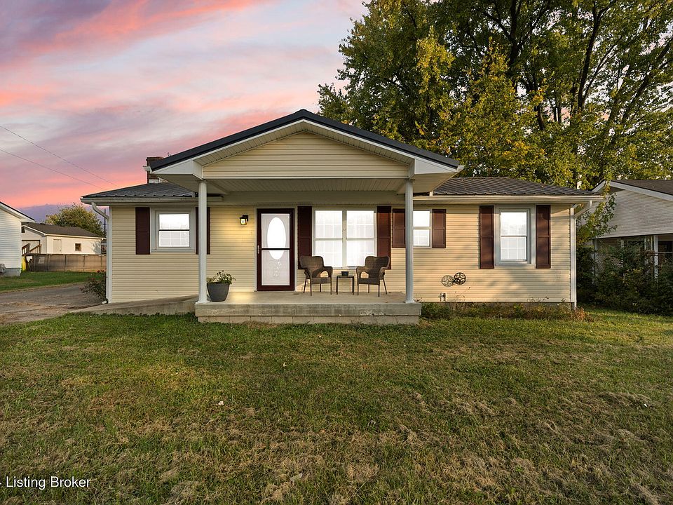 Won't Last Long!!! Come check out this great home that features Three bedrooms, two baths, and a separate Office/Den. Walking in you will see a Nice Large living area with lots of natural light and a separate dining area. The large Eat-in Kitchen features lots of cabinetry with French doors leading out to side patio. The Primary Suite features a large bedroom with a en suite with Tiled Stand Up Shower. An office area and two bedrooms and a full bath completes the rest of the first floor. Outside you will enjoy the Large Backyard and the great covered front porch to sit and relax. Located close to the downtown Bardstown and the New Bardstown elementary and all amenities.