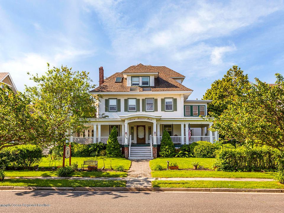Great location, 2 HOMES, 1 BLOCK to the beach on an 80 x 140 OVERSIZED lot. Main home has 9 bedrooms and 9 bathrooms, huge wrap around front porch and open back deck. Currently operating as a bed & breakfast and could be restored to be a wonderful grand family beach retreat. Floor plans for first floor re-design to original residential layout can be provided upon request. Home also offers a year round cottage (for family or income property) with 3 bedrooms and 2 baths, kitchen, living room/dining room combo, & den. The location, property and rear cottage make this home a great value for Avon-by-the-Sea real estate.