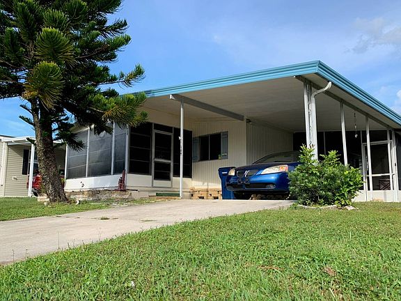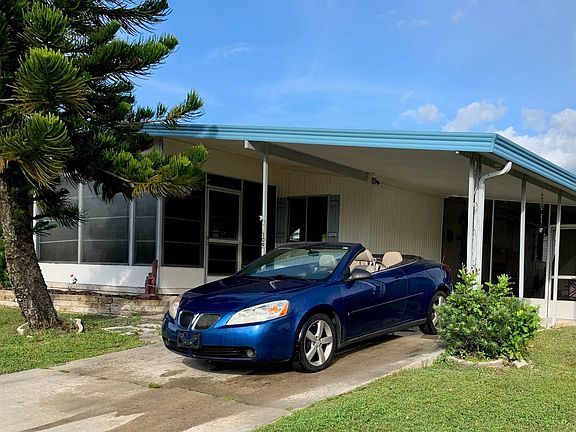 You've found your perfect vacation or year round home!!! It even comes with a beautiful blue hard top convertible 2006 Pontiac G6. The home is light and bright with a stylish white kitchen. There is a front set lanai as well as a side screened area to enjoy the beautiful Florida weather! Nice sized shed for storage. Mostly furnished with tons of updates. New electrical panel, some plumbing updated, remodeled bathrooms, new flooring throughout, fresh interior paint, and new fans and light fixtures. Great deal in a wonderful, active community with the most amenities in the area. Park has access to the Manatee River with a marina for boats. Ellenton is a lovely area that is centrally located to the interstates and not far from the beaches. Lot rent includes lawn maintenance, water/sewer/trash, and taxes. Home can also be sold alone without the car with an asking price of $14,900.