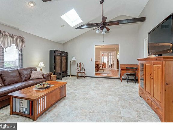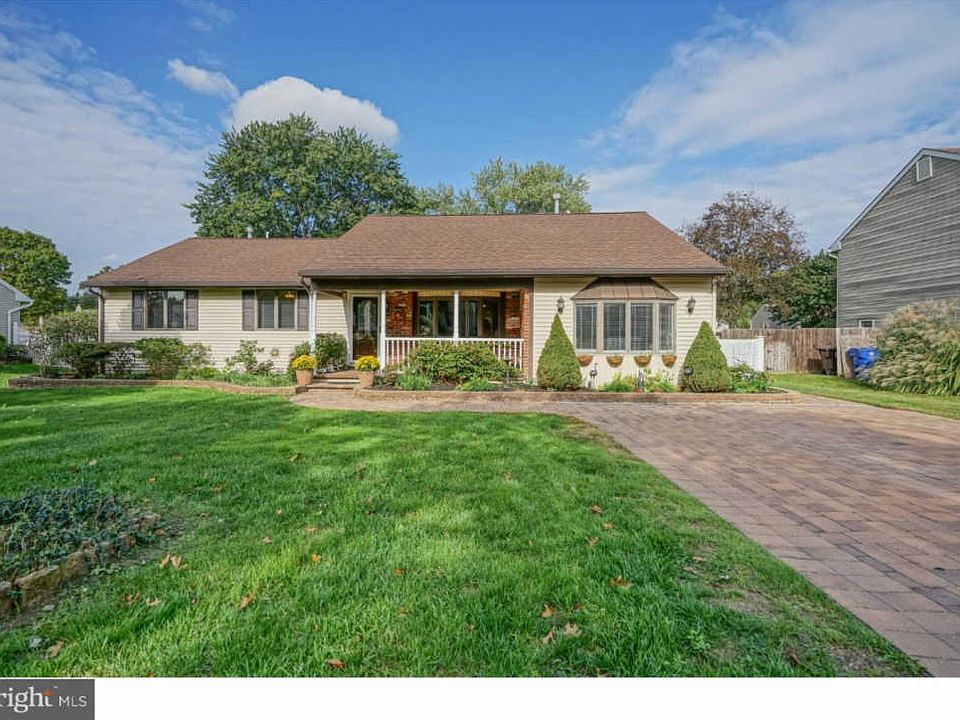 An entertainers dream! Welcome to this bright and spacious rancher with nearly 2500 sq ft of living space,located on a quiet cul-de-sac in Tenby Chase. You'll just love this cheerful home with it's largely open concept design! Enter the light bright living room w large bay window, which flows effortlessly into the wide open oversized eat in kitchen and dining room. There is so much to love about the size and open design of this kitchen space with its white wood cabinets, stainless steel backsplash, under cabinet lighting, gas cooking and huge center island. Skylights in the eat-in area provide streaming natural light and can accommodate a sizable table. Step down into what some might find the "Crown Jewel" of the home...an oversized great room with a dramatic vaulted ceiling, rustic exposed beams and warm and inviting direct vent gas fireplace. Cozy up in the 4 season sunroom with your drink of choice or step beyond the sliding glass doors to the Trex deck, overlooking the lovely manicured yard with seasonal surprises of perennial plantings. Right off of the kitchen, you'll find a mudroom/pantry/storage area with access to the backyard. A utility sink and plenty of shelving make organizing a breeze. Through a French door off of the dining room is the 4th bedroom with its own private exterior entrance, that would be perfect for an in-law or Au-pair suite. It is currently used as an office and offers built-in cabinetry and a bright bow window. The master suite offers three sizeable closets, an updated full bath with easy-access stall shower, decorative crown molding and sliding glass doors to the back deck with views of the garden. The two additional bedrooms have neutral carpeting and white 6-panel doors. The updated hall bath is light and bright with a white subway-tiled shower with decorative listello and jetted tub. The entire interior has been freshly painted! Other notable features include: 2-zone heat and air; newer heated roof (2005); newer water heater (2014); gutter guards; wireless ADT security system; Andersen windows throughout, EP Henry paver driveway & walkway; his & hers storage shed, and ceiling fans in every room. What an opportunity to own such a lovely and well maintained...and rare 2400+ sq foot rancher right here in Tenby Chase at such a great price!
