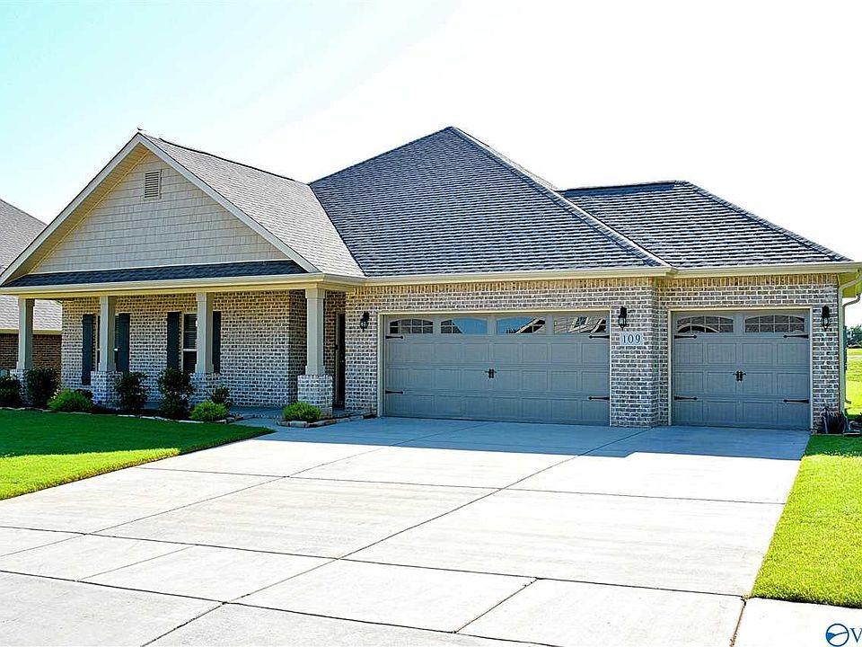 You'll love this classic 4 bedroom 2.5 bath home in Madison's Brentwood Manor. This single-story is just 2 years young & looks brand new! Stunning wainscoting & rich hardwoods lead you from the entry way to the lovely open living & dining rooms w/high ceiling & large windows. Fabulous kitchen w/upgraded cabinets, granite counters, light fixtures, gas range, 2nd wall oven, walk-in pantry, prep island. Isolated master suite w/lovely bath & large walk-in closet. Covered front & back porches & large level yard w/playset. 3 car garage w/above-ground storm shelter & organizational shelving. Madison City Schools. Quick access to shopping, restaurants & 565. Call to schedule a showing today!