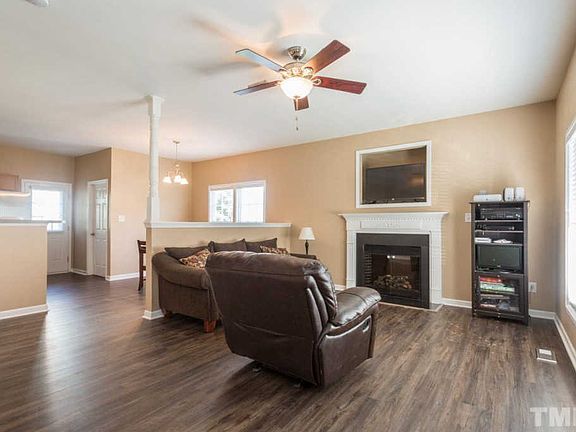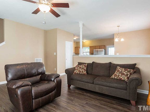Great Location close to Mingo Creek Park. Bright, open kitchen and living area. New laminate wood look flooring downstairs. The garage is fully insulated with a work bench and peg board. Spacious Master Bedroom and bath w/ his and hers vanities, garden tub/sep. shower & private water closet. Great backyard & deck. Community park & pond! Convenient to I540, Hwy 64/264 and Knightdale Boulevard amenities.