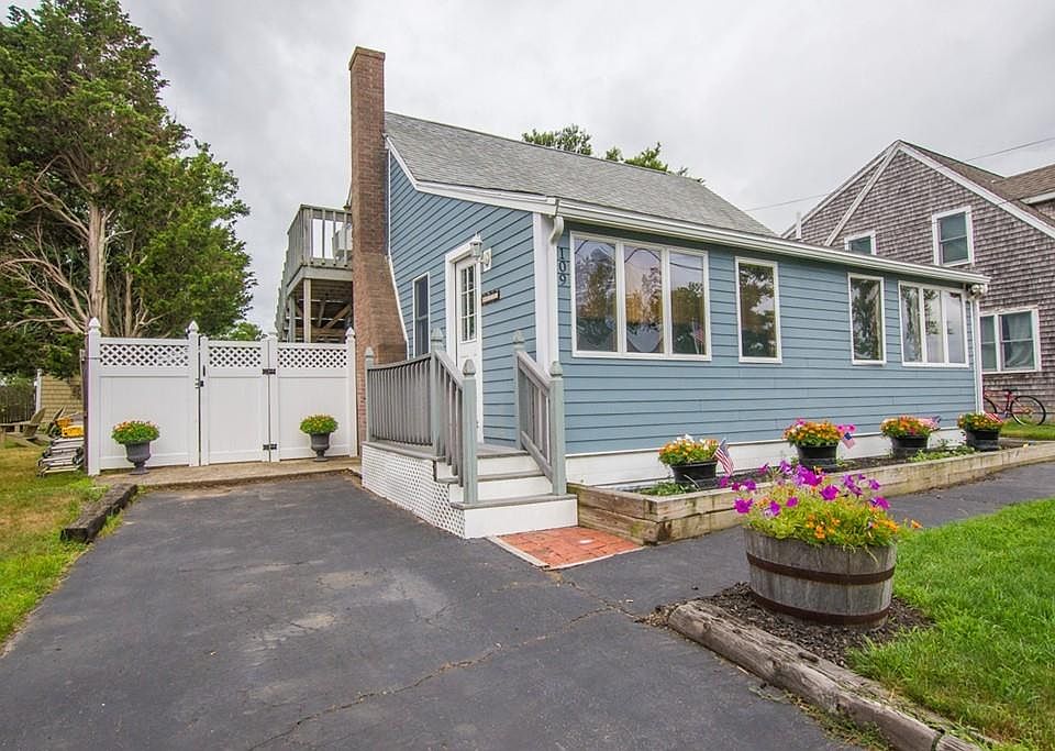 Great Location in Ocean Bluff .. Walking distance to beach, across from playground and near Peter Igo Park .. perfect spot to live. You may want to sit in the enclosed porch as you walk in the front door, or maybe you'll take advantage of the deck off the back of the home in the fenced in yard! The first floor master bedroom has a bathroom with a standup shower, the second floor bedroom also has a bathroom with a dressing room/walk in closet that you will fall in love with and a sliding door with a set of stairs giving this bedroom it's own entrance from outside. The first floor bathroom has a shower as well as a soaking tub with jets! The living room has a brick fireplace, recessed lighting and the hardwood is looking good. The washer and dryer are in the kitchen as well as the gas range, recessed lighting and large sitting/dining area! This home has natural GAS heat, town sewer, lots of storage in the basement, 2 storage sheds and 2 driveways! *No flood ins required