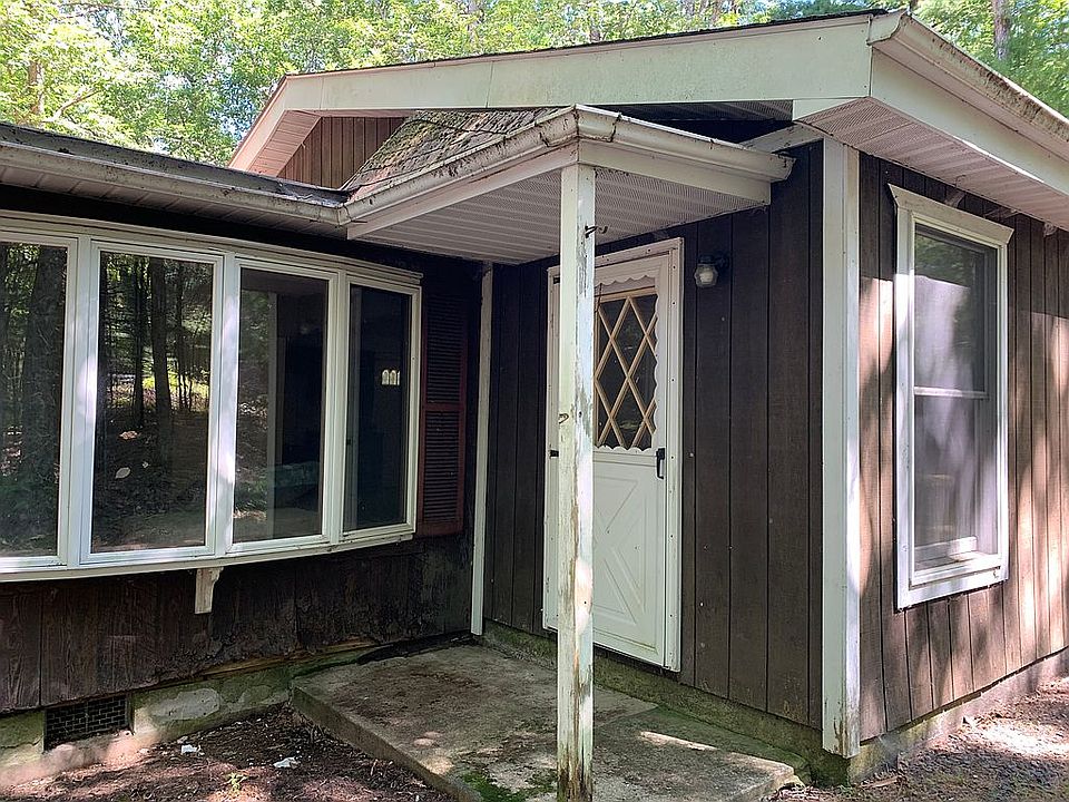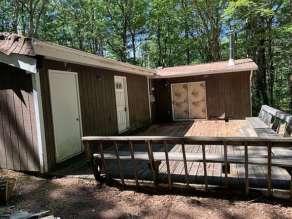 3Bed 2Bath Attached Garage Deck Bay window Exposed wooden ceiling beam 1600sqft Nice quiet wooded 1Acre property 10min to Dingmans Ferry Bridge/NJ Border 2miles to childs park waterfalls Taxes $3600 per year Handyman special!! Could be a beautiful Ranch but needs complete gut and total renovation. Needs everything.