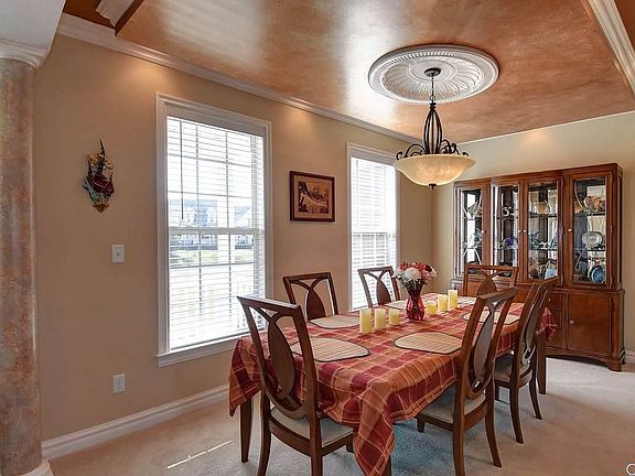 Gorgeous custom home ready for its new owners. Open & inviting split floor plan,making entertaining a breeze. Deluxe kitchen w/upgraded wood cabinets w/pull outs for organizing & huge bar for gatherings. Professionally designed details & paint make this a one of a kind home! Reversed trey ceilings,loads of recessed lighting & gorgeous trim throughout. Lg Master suite w/dual vanities framed with archway. Walk-in tiled shower & jetted tub. Maintenance free exterior. Lg front & back porches. PRIVATE rear backyard to enjoy the outdoors. Community offers small boat dock for water access.Perfect!